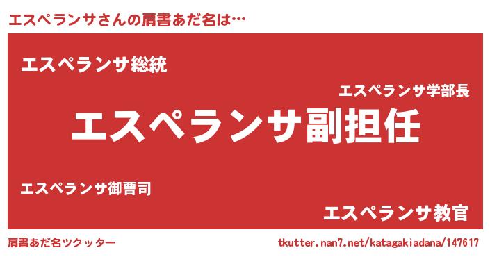 | 男性向けラノベタイトル風あだ名 | 『エスペランサという概念が存在しない退屈な世界 』 |