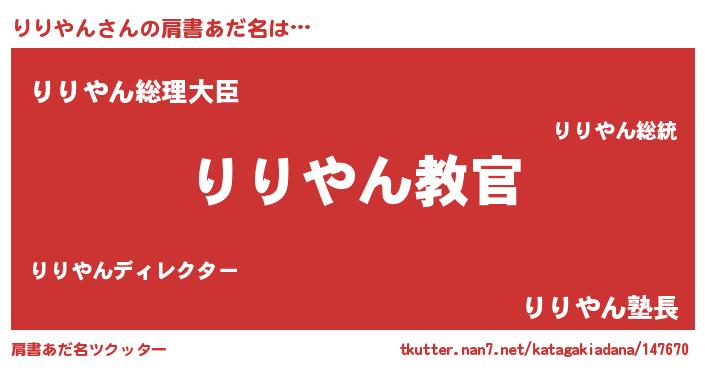 | 女子向けラノベタイトル風あだ名 | 『乙女ゲームの破滅フラグしかない悪役りりやんに転生してしまった…』 |