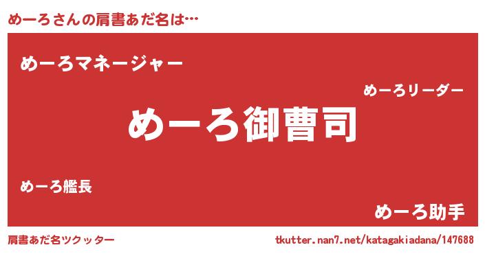 | 意味不明あだ名 | 『ペロリンめーろ』『永久保存めーろ』 |