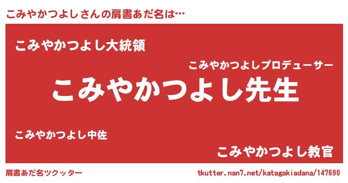 | 男性向けラノベタイトル風あだ名 | 『こみやかつよしという概念が存在しない退屈な世界 』 |