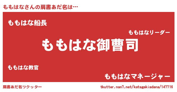 | ヒーロー風カッコイイあだ名 | 『スーパーモモハナ』『銀牙騎士モモ』 |