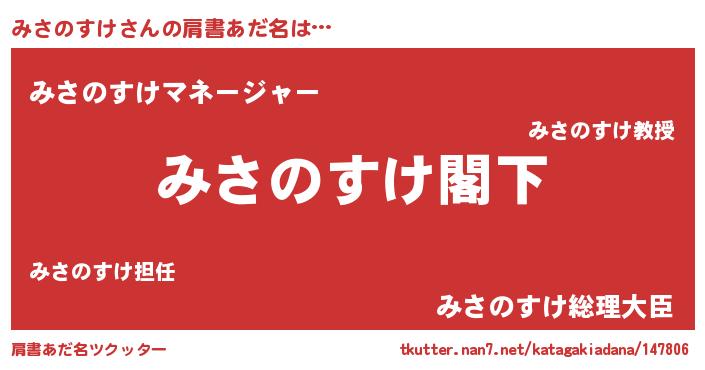 | 男性向けラノベタイトル風あだ名 | 『Re:みさのすけから始める異世界生活』 |