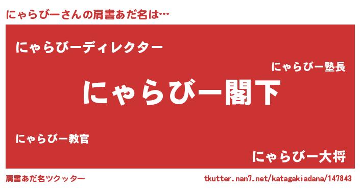 | 意味不明あだ名 | 『自称にゃらびー』 |