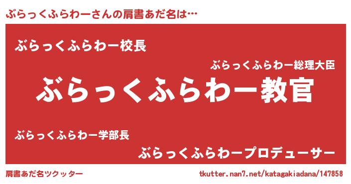 | 男性向けラノベタイトル風あだ名 | 『この素晴らしい世界にぶらっくふらわーを!』 |