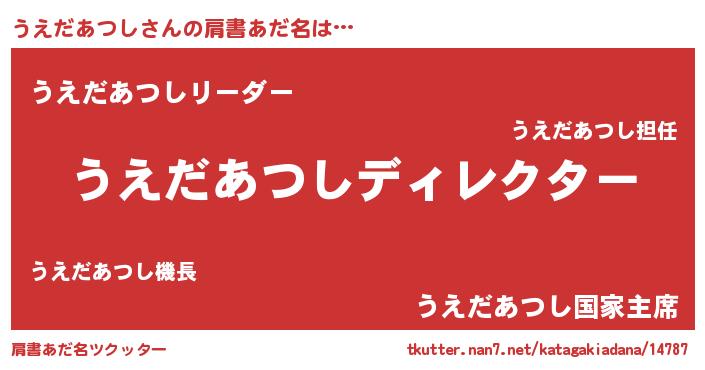 | ポケモン風あだ名 | 『ウエゴンZ』『ヒウエダアツシ』 |