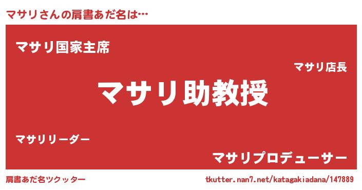 | 自動車の名前っぽいあだ名 | 『マンR』『マスラー』『マサティマ』 |