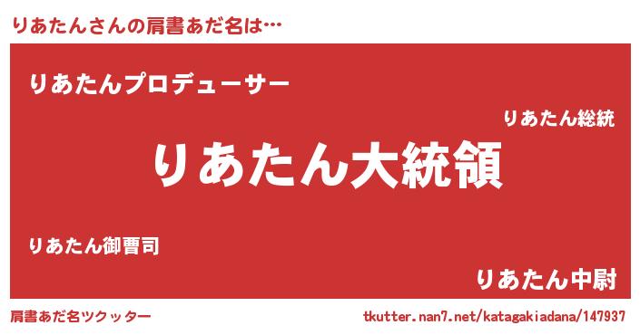| 意味不明あだ名 | 『りあたんフォーエバー』『自称りあたん』 |
