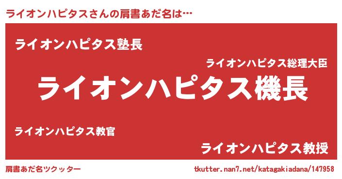 | 男性向けラノベタイトル風あだ名 | 『緋弾のライオンハピタス』 |