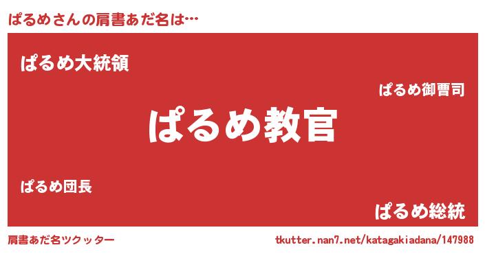 | 男性向けラノベタイトル風あだ名 | 『この素晴らしい世界にぱるめを!』 |
