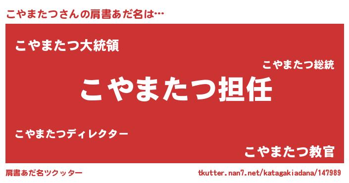 | 意味不明あだ名 | 『永久保存こやまたつ』『自称こやまたつ』 |