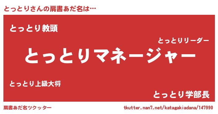 | ヘコむあだ名 | 『とっとり(小並感)』『とっ太郎』 |