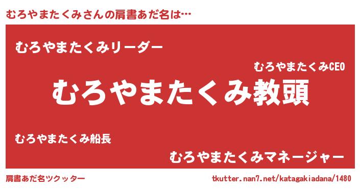 | ヘコむあだ名 | 『むろやまたくみ(笑)』『むろぷりん』 |