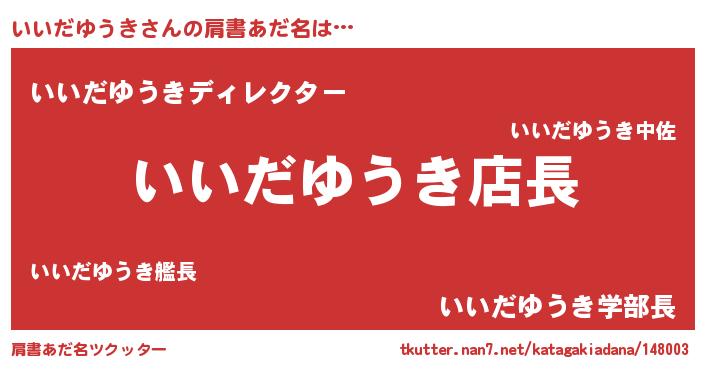 | 男性向けラノベタイトル風あだ名 | 『イイダユウキアートオンライン』 |