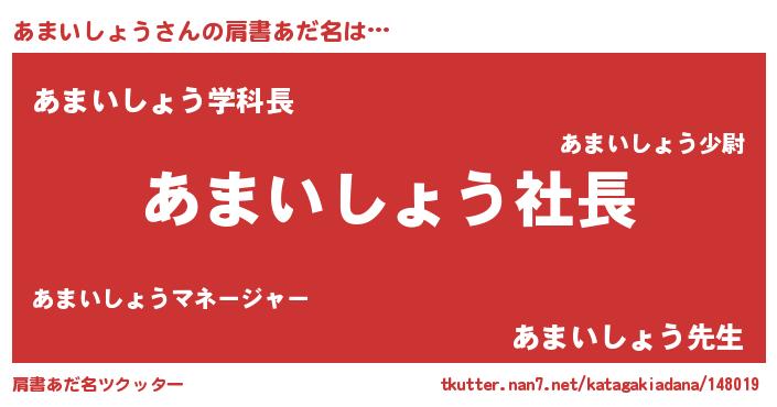 | 男性向けラノベタイトル風あだ名 | 『アマイショウアートオンライン』 |