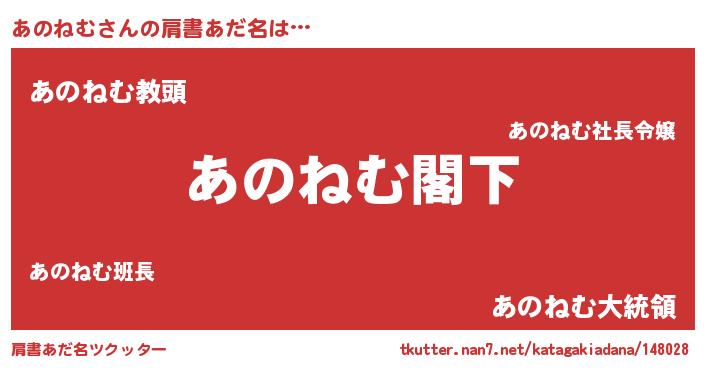 | 意味不明あだ名 | 『自称あのねむ』『永久保存あのねむ』 |
