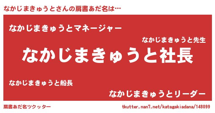 | 女子向けラノベタイトル風あだ名 | 『なかじまきゅうと姫と円卓の騎士』 |