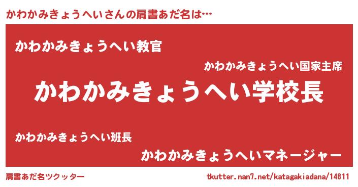 | 女子向けラノベタイトル風あだ名 | 『かわかみきょうへい恋絵巻』 |