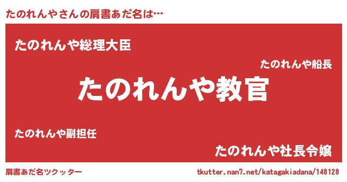 | 男性向けラノベタイトル風あだ名 | 『この素晴らしい世界にたのれんやを!』 |