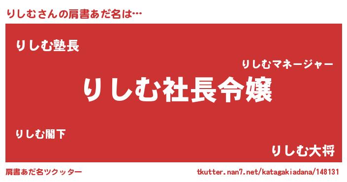 | ヘコむあだ名 | 『りしもー』『りしっぺ』『豆乳』 |