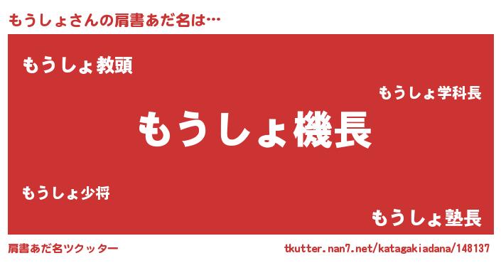 | ヘコむあだ名 | 『もうしょ(震え声)』『もう太郎』 |