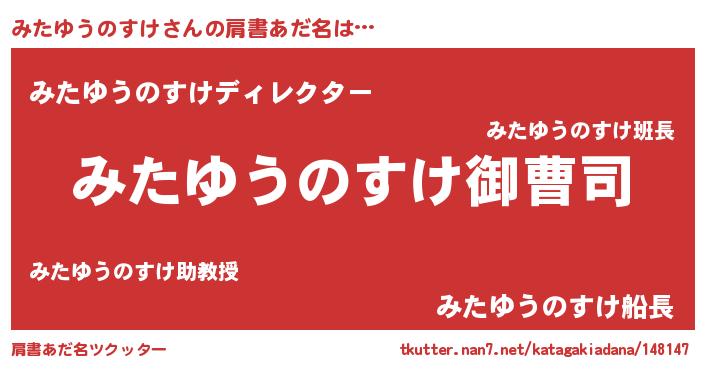 | 女子向けラノベタイトル風あだ名 | 『みたゆうのすけ姫と円卓の騎士』 |