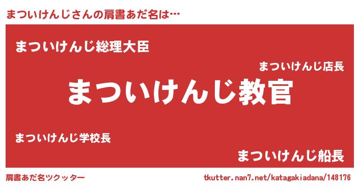 | 男性向けラノベタイトル風あだ名 | 『この素晴らしい世界にまついけんじを!』 |