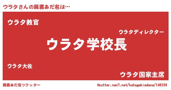 | 女子向けラノベタイトル風あだ名 | 『死神ウラタの再婚』『ウラタ伯爵の花嫁』 |
