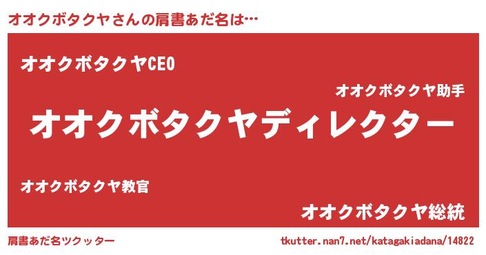 | 男性向けラノベタイトル風あだ名 | 『はたらくオオクボタクヤさま!』 |