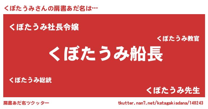 | 意味不明あだ名 | 『ペロリンくぼたうみ』『自称くぼたうみ』 |