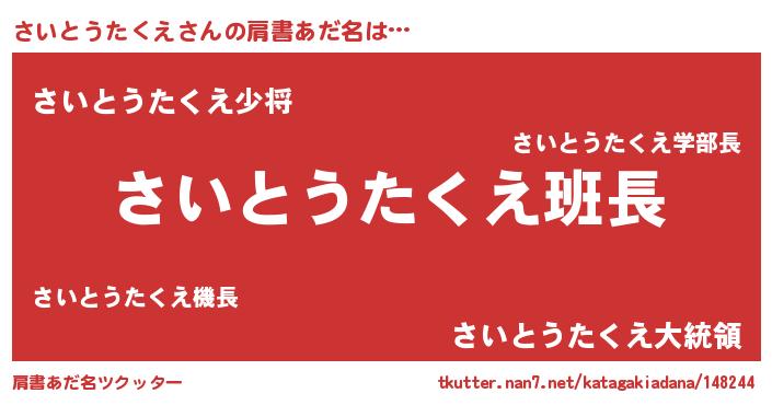 | 意味不明あだ名 | 『とにかく怪しいさいとうたくえ』 |