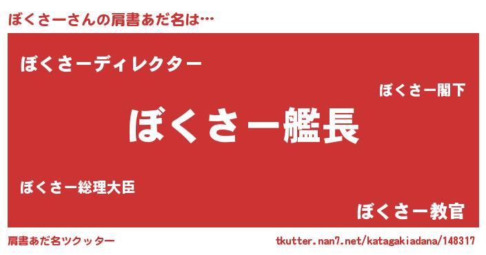| 男性向けラノベタイトル風あだ名 | 『うちのぼくさーが世界を掌握している!』 |