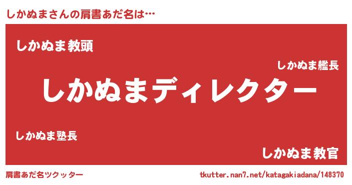 | 男性向けラノベタイトル風あだ名 | 『はたらくしかぬまさま!』 |