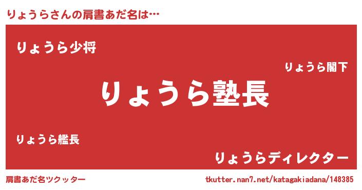 | 女子向けラノベタイトル風あだ名 | 『りょうらは平凡を望む』 |