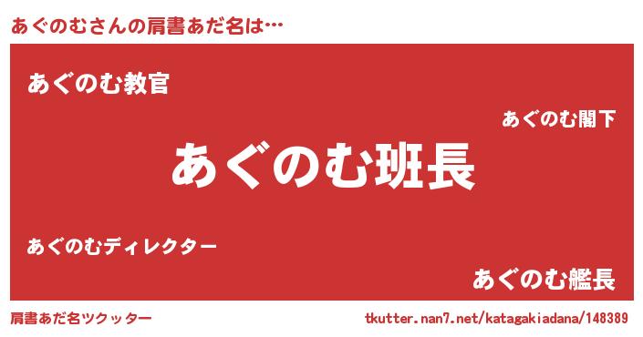 | 女子向けラノベタイトル風あだ名 | 『あぐのむは平凡を望む』 |