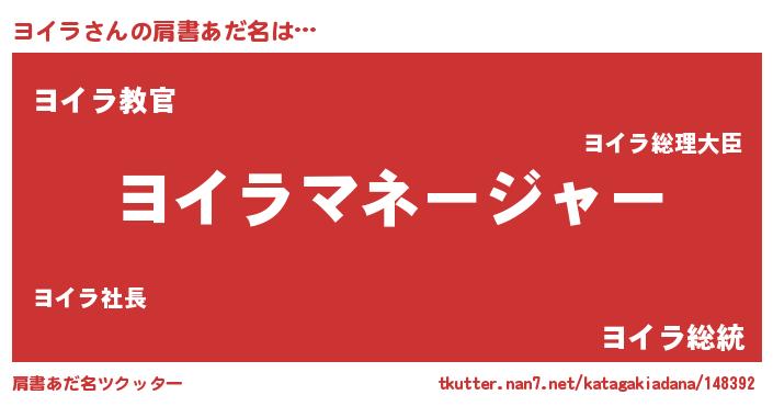 | 意味不明あだ名 | 『住所不定無職ヨイラ(5歳)』『自称ヨイラ』 |