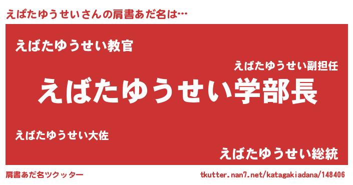 | ヘコむあだ名 | 『えばたゆうせい(遠い目)』『えばぷりん』 |
