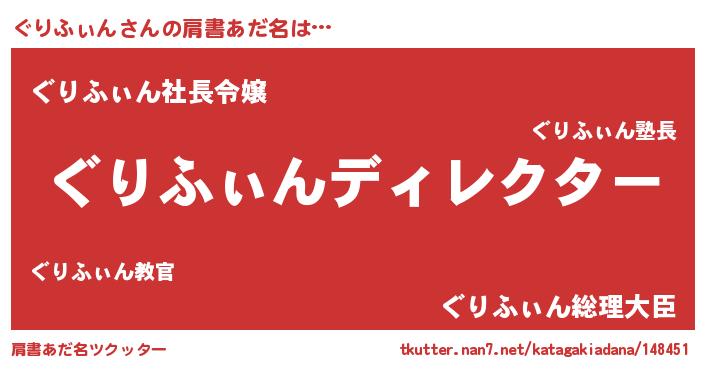 | 男性向けラノベタイトル風あだ名 | 『はたらくぐりふぃんさま!』 |