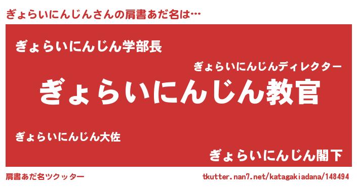 | 男性向けラノベタイトル風あだ名 | 『この素晴らしい世界にぎょらいにんじんを!』 |
