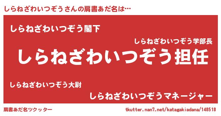 | 可愛いあだ名 | 『しらねざわいつぞうママ』『しらぷりん』 |