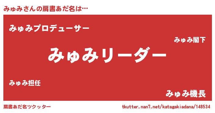 | ヘコむあだ名 | 『みゅっちょ』『みゅみ(遠い目)』 |