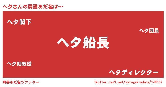| 男性向けラノベタイトル風あだ名 | 『緋弾のヘタ』『はたらくヘタさま!』 |