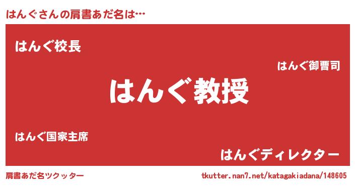 | ヘコむあだ名 | 『はんぐ(小並感)』『はんにゅー』 |