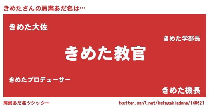 | 男性向けラノベタイトル風あだ名 | 『この素晴らしい世界にきめたを!』 |