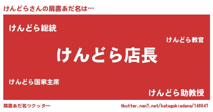 | 意味不明あだ名 | 『ペロリンけんどら』『自称けんどら』 |