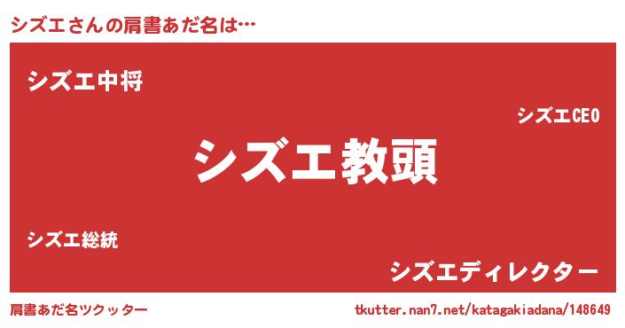 | ヘコむあだ名 | 『シズエ(笑)』『シズもー』『シズを』 |