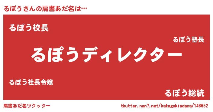 | 男性向けラノベタイトル風あだ名 | 『るぽうに滅ぼされるだけの簡単なお仕事です』 |