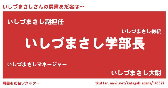 | 男性向けラノベタイトル風あだ名 | 『ノーゲーム・ノーイシヅマサシ』 |