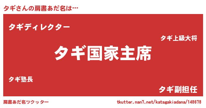 | 意味不明あだ名 | 『タギフォーエバー』『永久保存タギ』 |