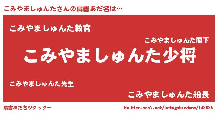 | ヘコむあだ名 | 『こみやましゅんた(苦笑)』『こみもー』 |