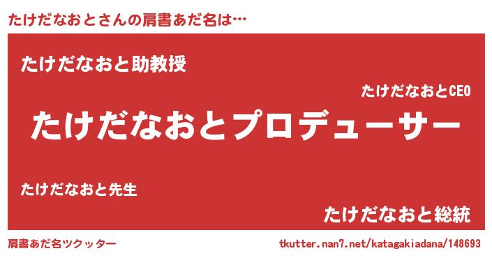 | 男性向けラノベタイトル風あだ名 | 『はたらくたけだなおとさま!』 |